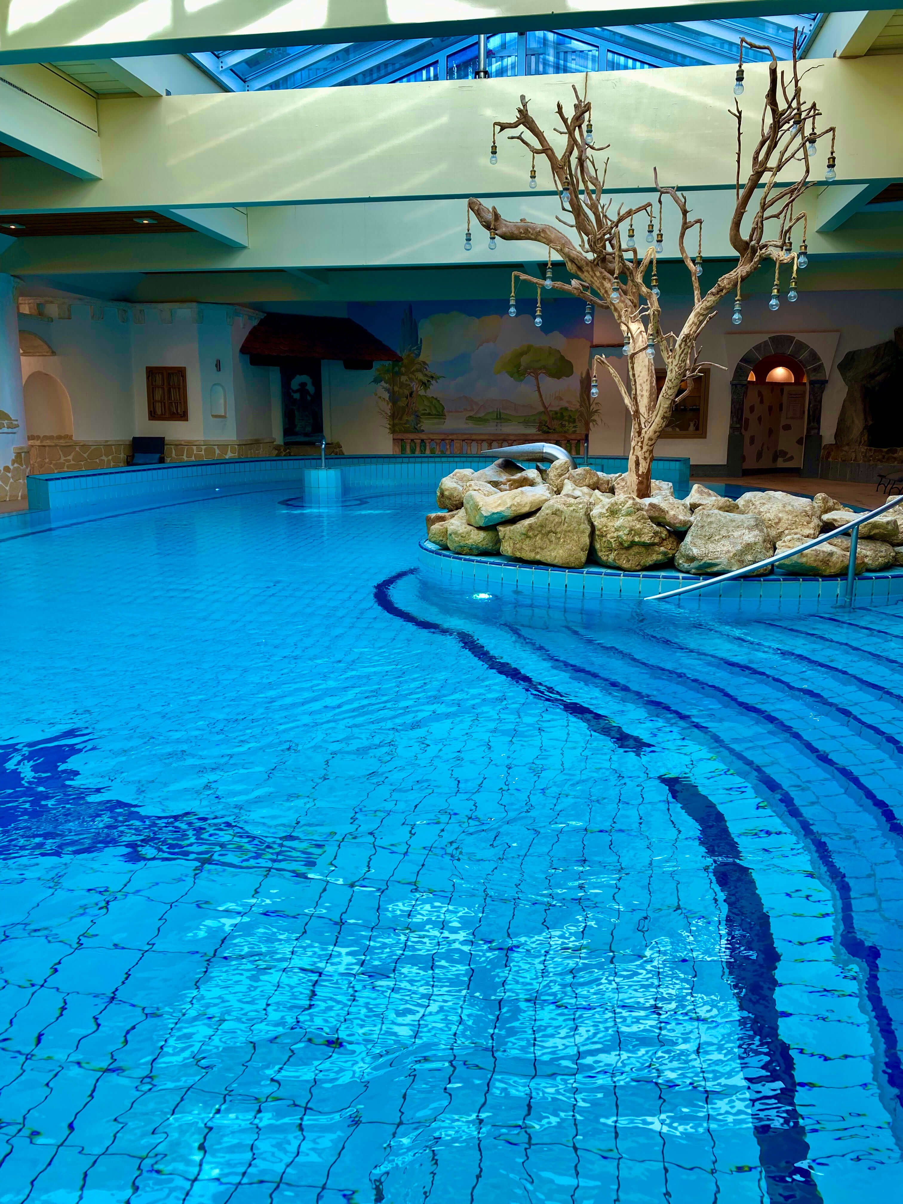 Das Thermal-Wellnessangebot des Parkhotels Bad Griesbach auf 3.600 qm hat mich begeistert. Verschiedene Saunen, ein Dampfbad, Whirlpools, Thermalwasser Indoor Pool sowie Süßwasser Outdoor Pool und großzügige Ruhebereiche mit Gartenblick laden dazu ein, sich in der hauseigenen Idun Therme rundum zu entspannen und die Seele baumeln zu lassen.